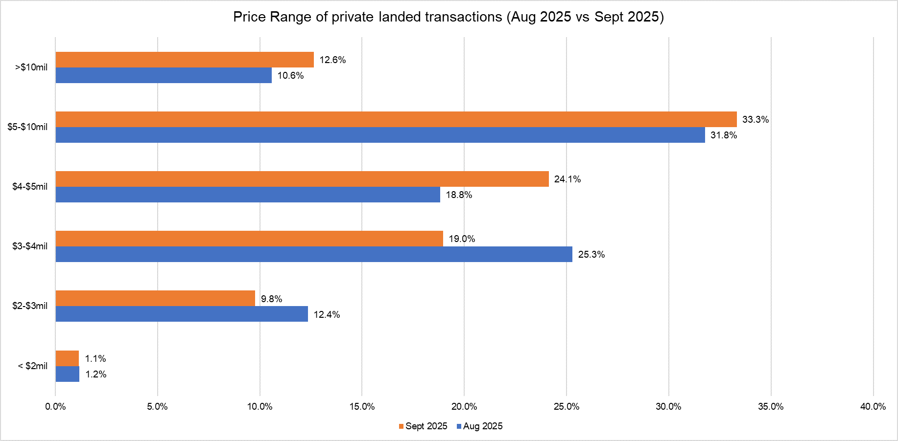Chart 1: Price range of private resale landed transactions in August 2025 vs September 2025